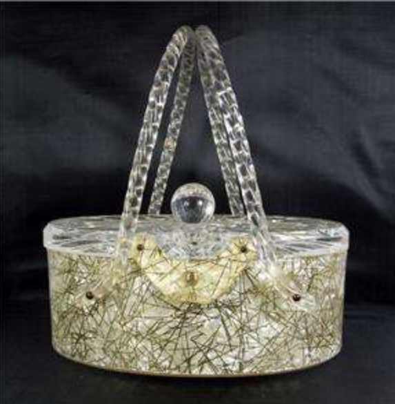 LUCITE TO LEIBER: ICONIC HANDBAGS IN MID-20th-CENTURY NYC looks at New York City as a fashion center for women’s hand bags during the 20th Century. During the first half of the 20th Century, NYC attracted more than its share of mid-century modern style. for several decades plastic in the form of Lucite rose to great popularity to drive handbag fashions —until it fell out of favor. the second half of the 20th Century was marked by one woman’s creative expression which left its permanent mark on fashion. Both of these fashion trends are now thriving in the world of collectibles.