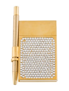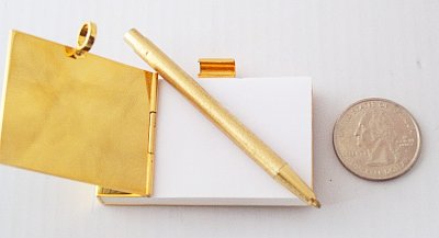JUDITH LEIBER PAD w PEN IN BLACK FAUX CROCODILE LEATHER & GOLD METAL